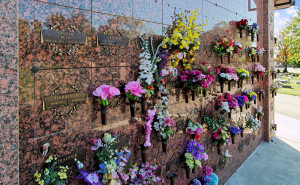 These beautiful areas are located both indoors (recessed in our visitation center wall) and outdoors (in immaculately tended columbaria throughout the cemetery grounds.)